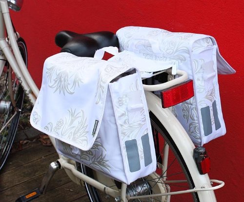 2x BASIL BLOSSOM Fahrradtaschen Schultertaschen Gepäckträgertaschen je 12l wasserdicht Basil: so schön können Fahrradtaschen seinFahrradtaschen müssen nicht nur praktische und funktionale Wegbegleiter sein, sondern können allemal als optischer Blickfang dienen, wie die oben abgebildeten, wunderschönen BASIL Blossom-Fahrradtaschen. Das florale Design ist einzigartig. Die Taschen sind das perfekte Produkt für Radler, die mit Mut zu Neuem Abwechslung suchen, keine Lust auf Langeweile haben und vielleicht etwas auffallen möchten! Sind die Taschen einmal vom Fahrrad genommen, erinnert nichts mehr an ihre eigentliche Eigenschaft als Gepäckträgertaschen. Sie werden mittels Haken an den Streben des Gepäckträgers befestigt, davon weggenommen können sie mittels beiliegendem Schultergurt als modisches Accessoire jedem Stadtbummel beiwohnen. Wieder am Rad wird der Schultergurt abgenommen, damit während der Fahrt nichts stört oder in die Speichen geraten kann. Ausstattung:im Lieferumfang sind 2 BASIL-Fahrradtaschen enthalten verwendbar als Fahrrad- und als Schultertasche Anhängevorrichtung für Gepäckträger auf der Rückseite im ReißverschlußfachDUO-Farben-Aufdruck mit Blumenmotiv regenschützende Klappenmit Tragegriff Schultergurt verstell- und abnehmbar wasserdichtes Material mit Reflexstreifen Innenfutter und Innenfach Maße pro Tasche: ca. 38 x 31 x 9 xm (L x H x T)Inhalt: jeweils ca. 12 Liter Farbe: weiß