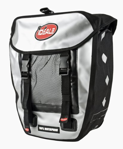 IDEALE HITEC Packtasche Gepäcktragertasche Hecktasche wasserdicht schwarz/silber aus superstrapazierfähigem Material IDEALE - die universelle Packlösung für Ihr Fahrrad Die äußerst robuste, mit unempfindlichem und 100%ig wasserfestem Außenmaterial ausgestattete Gepäckträgertasche von IDEALE verfügt über ein passendes Volumen, mit seinem extrem geringen Eigengewicht begeistert er bei jedem Touren-Einsatz ebenso wie im täglichen Gebrauch. Die praktischen Rollverschlüsse beweisen, daß unkomplizierte Lösungen auch die praktikabelsten sind. Die Gepäckträgertasche für jede Lage! Die Tasche wird mittels seiner verstellbaren Hakenbefestigung am Gepäckträger montiert. Dank seines speziellen Befestigungssystems ist er sowohl für die Rechts- als auch für die Linksmontage am Gepäckträger geeignet. Endgültig am Träger fixiert wird er durch den ebenfalls verstellbaren Haken an einer Seitenstrebe des Gepäckträgers. Zusätzlich verhindert eine Clip-Sicherung den Verlust der Tasche bei allzu unebenen Strecken. Ausstattung: mit verstellbarer Hakenbesfestigung für 8, 10, 12 mm Gepäckträgerstreben Hakenbefestigung für Rechts- oder Linksmontage wechselbar aus reißfestem 840D Polyester von Scotchlite - reflective material nahtlos miteinander verschweißt mit Innen- und Randverstärkung mit variablem Rollverschluß verstärkter Tragegriff mit Frontnetztasche mit praktischem Tragegriff 2 vordere Riemenverschlüsse 100% wasserfest Rückseite mit Kunstsstoffverstärkung mit seitlichen Reflektorpunkten mit Schnappverschluß für Rucksack-Montage Farbe: schwarz/silber Maße: ca. 33 x 16 x 60 cm (B x T x H)